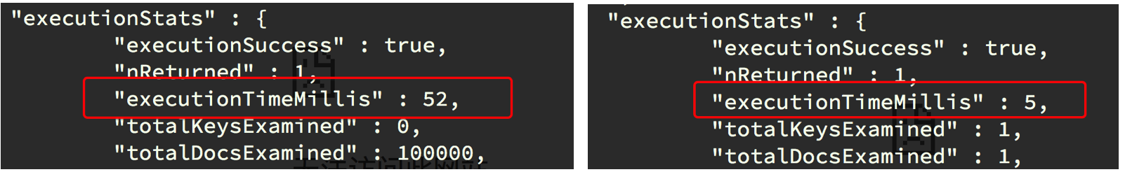 db.t1.find({name:'test10000'}).explain('executionStats')前后速度对比